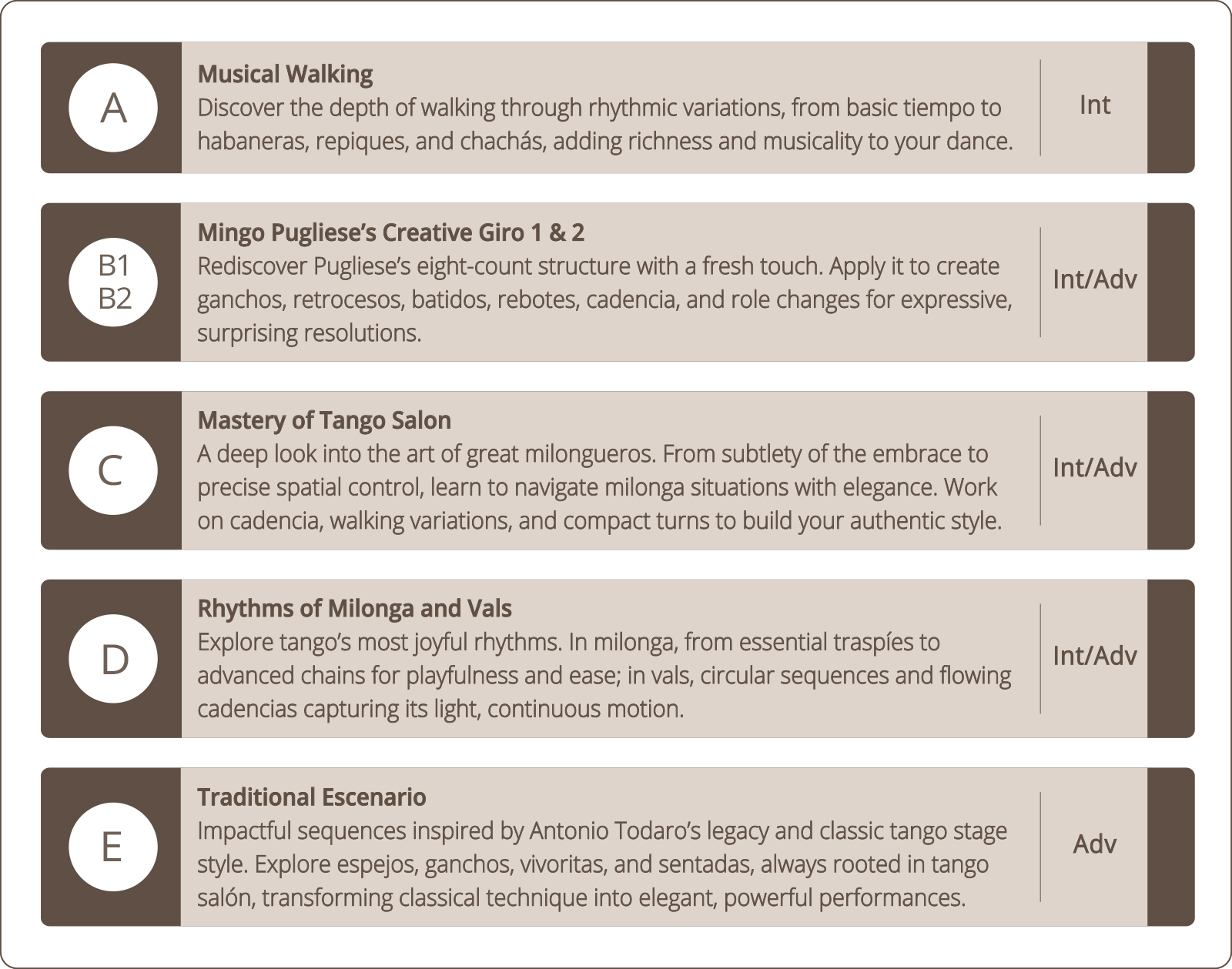 • On or before the registration deadline changes to existing registrations are possible. Please send us your requests to leoyflortango@gmail.com.