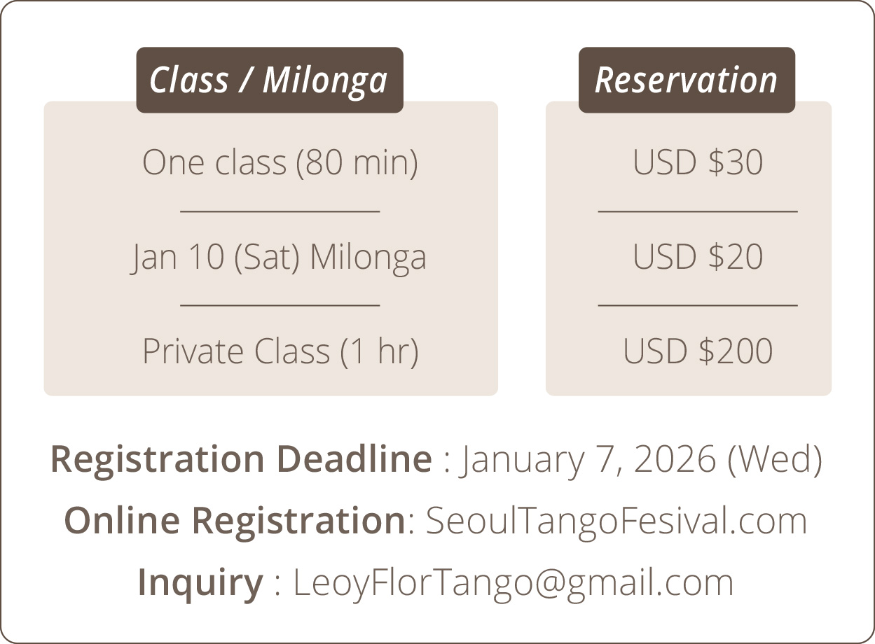 Registration has started! This is a nice chance for a great tango holiday in Seoul~