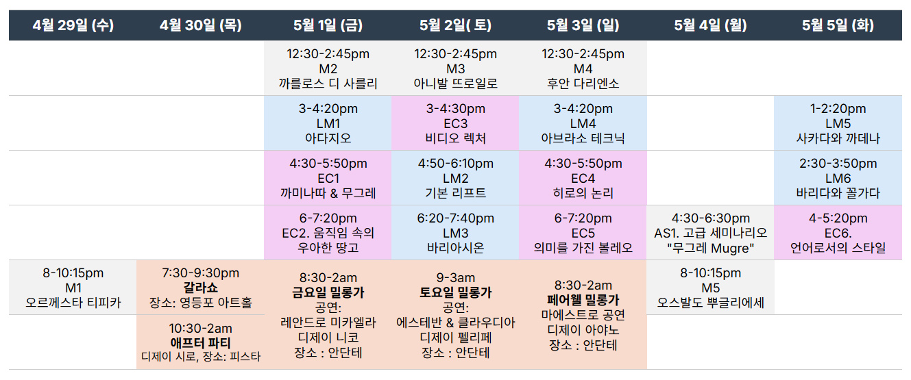 올해 서울 땅고 페스티벌은 4월 30일부터 5월 4일까지 열립니다. 세계적인 마에스트로 세 팀을 특별히 초청해, 서울에서 함께하게 되었습니다.