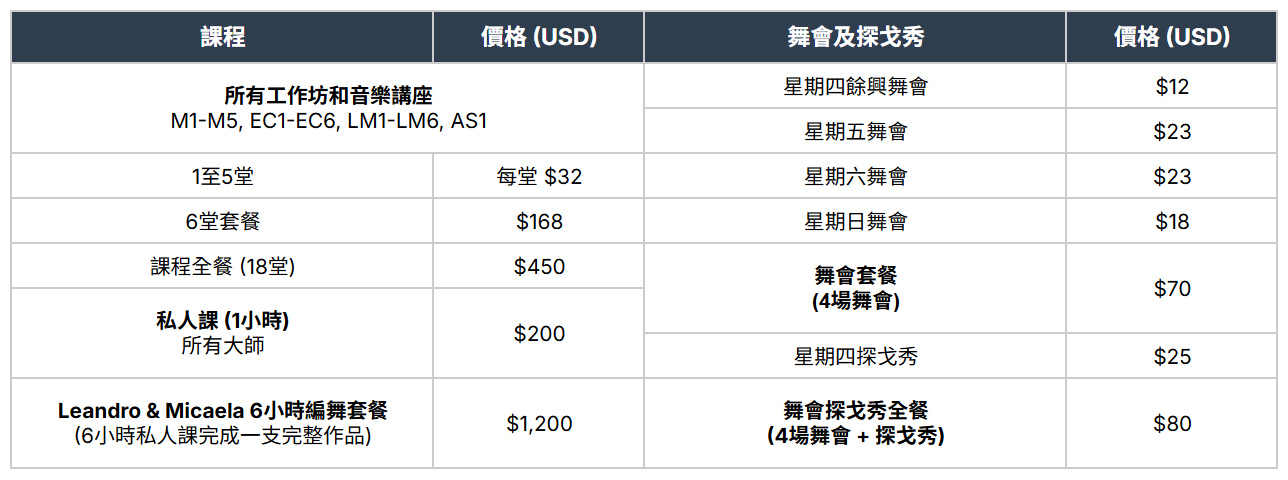 • EC1-EC6 : Esteban & Claudia 探戈工作坊